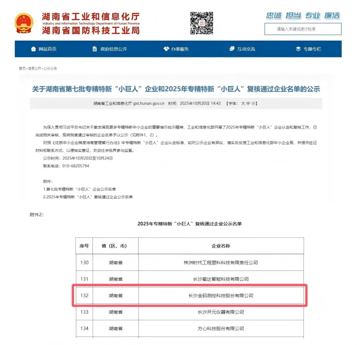 2025 թվականի հոկտեմբերին արդյունաբերության և տեղեկատվական տեխնոլոգիաների նախարարությունը ավարտել է 2025 թվականի «Փոքրիկ հսկա» ձեռնարկությունների վերանայման գործընթացը՝ «Մասնագիտացված, կատարելագործված, դիֆերենցիալ և նորարարական» դասակարգման ներքո և պաշտոնապես հրապարակել ցանկը։ Kingmach Measurement & Monitoring Technology Co., Ltd-ն հաջողությամբ անցել է խիստ վերանայումը և վերականգնել ազգային մակարդակի այս պատիվը՝ շնորհիվ իր մշտական նորարարության կարողության, մասնագիտական տեխնիկական հզորության և շուկայական կայուն գործունեության: