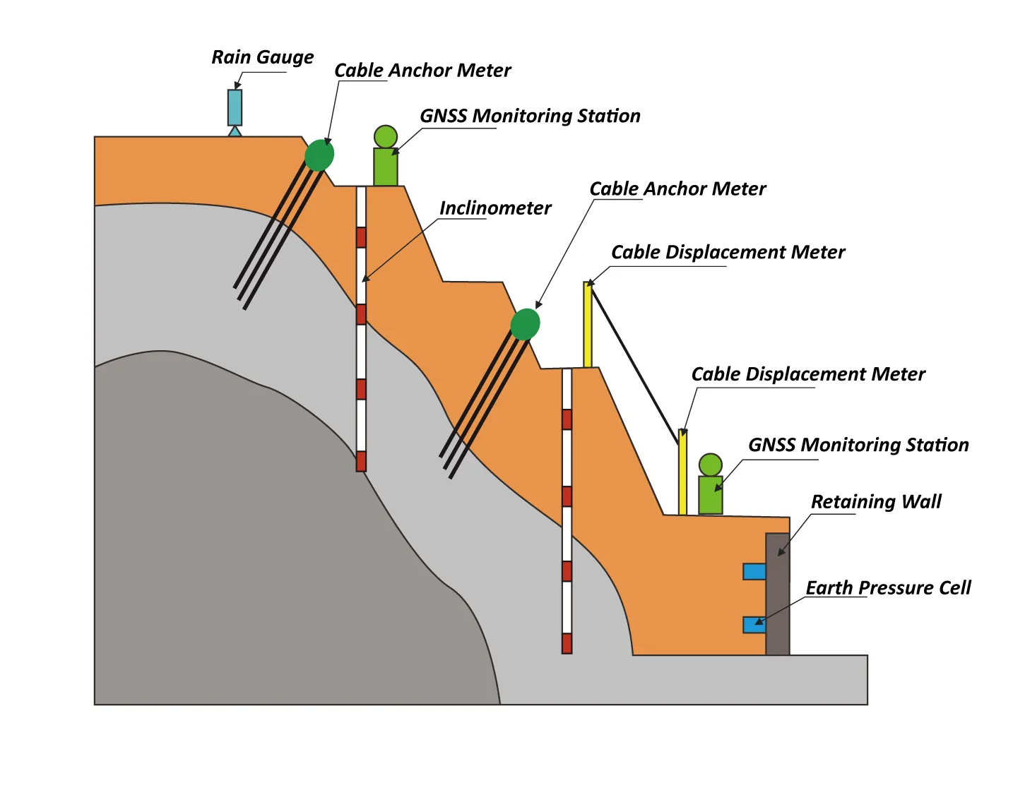 Օգտագործելով բարձր ճշգրտության և բարձր հուսալի մոնիտորինգի սենսորներ, այն արդյունավետորեն վերահսկում է թեքությունների կայունությունը: Մոնիտորինգի տվյալների և մակրոսկոպիկ դեֆորմացիայի և խափանումների նշանների համակցման միջոցով համապարփակ դատողություններ են արվում՝ որոշելու թեք կառուցվածքների անվտանգությունը և վերահսկելու կրող հզորությունը, գործառնական վիճակը և ամրությունը և այլն՝ անվտանգ շահագործման պահանջները բավարարելու համար: